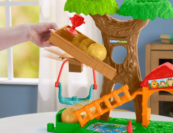 Unique, only available at our store.  The Wildlife Train & Trek Gift Set from Fisher-Price offers hours of wild storytelling play for toddlers. Kids can board animals onto the musical toy train and roll it along for fun actions as everyone travels to the next destination. At the habitat playset, kids can monkey around by tipping the platform to send “food” balls rolling down, rock animals on the teeter-totter treetops and working swing, and explore the observation deck. Gift set includes playset, train, push-along pickup truck, 2 figures, 4 animals and 2 balls. Colors and decorations may vary.