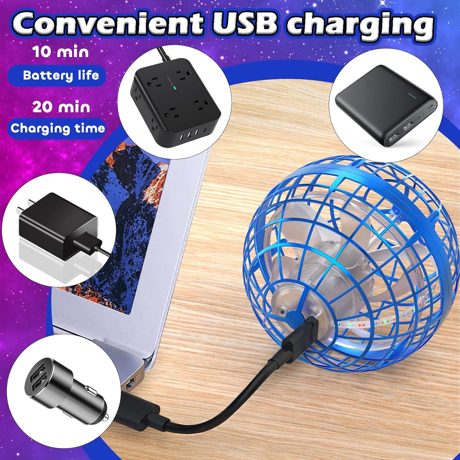 Flying Orb Ball Toys Soaring Hover Fidget Hand Controlled Mini Drone Cosmic Globe Spinning Kids Adults Outdoor Fly Toy Birthday Gift Cool Stuff for Boys Girls 6 7 8 9 10+ Year Old by Tikduck (Blue)