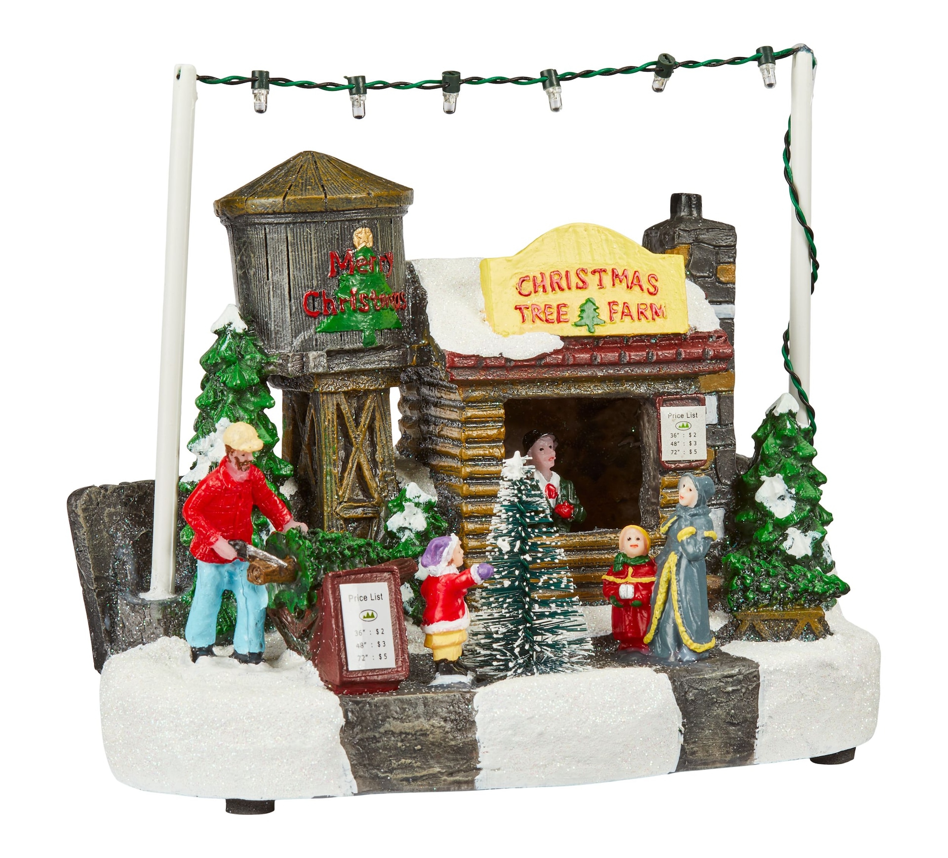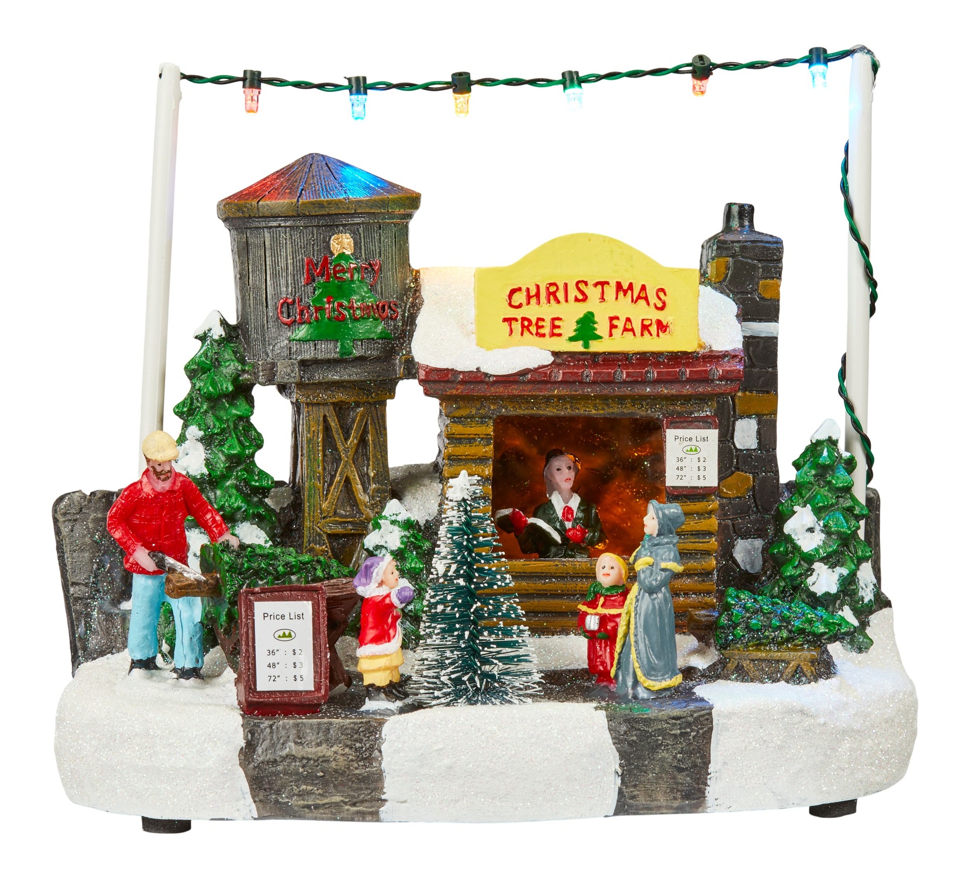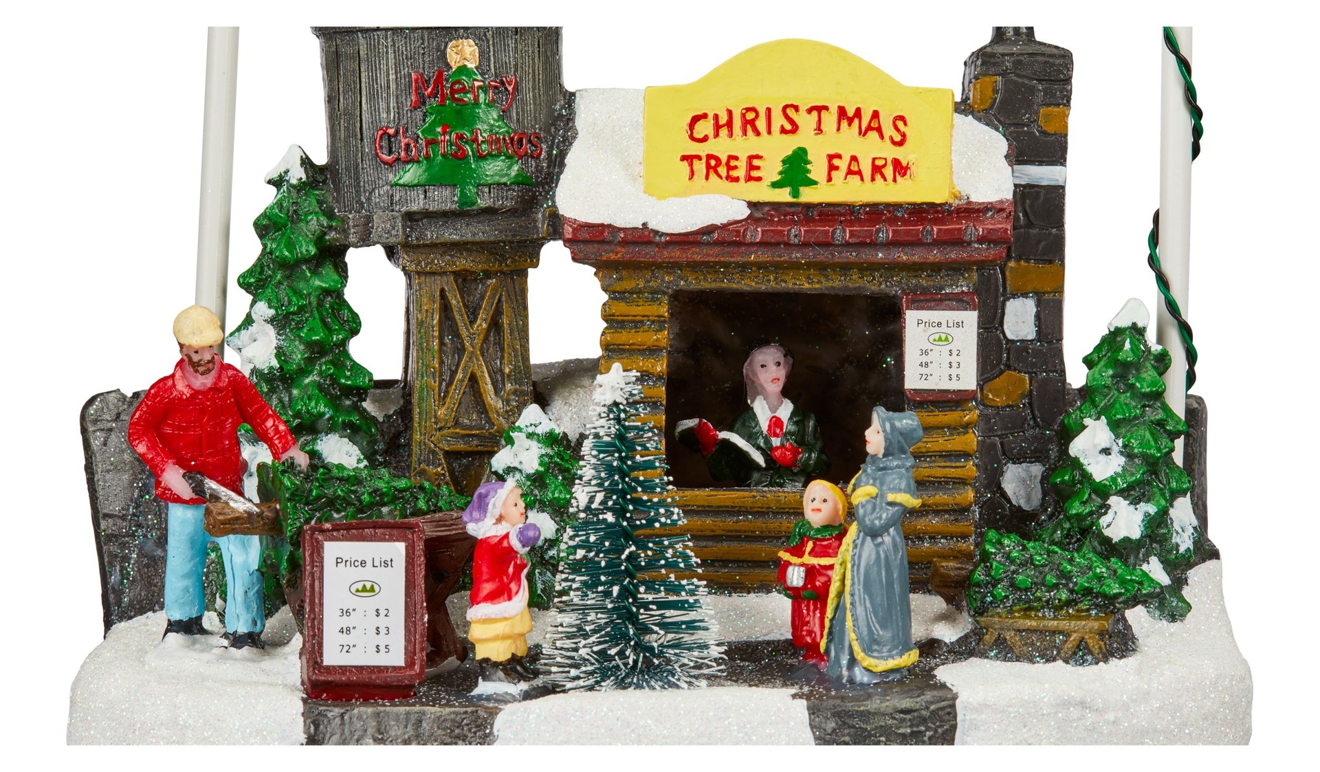 Bring a festive touch to any tabletop or mantle with the For Living Christmas Collection Battery Operated Green Ceramic Tree. This Christmas tree farm scene features 7 multi-colour LED lights that illuminate with the flick of a switch, creating a warm, celebratory ambiance. Crafted with meticulous detail, the miniature trees and surrounding elements come together in an enchanting display. With its compact size and battery-powered lights, this Christmas tree farm is ideal for indoor use only. Effortlessly set the holiday mood by incorporating this whimsical tree farm into your seasonal decor.