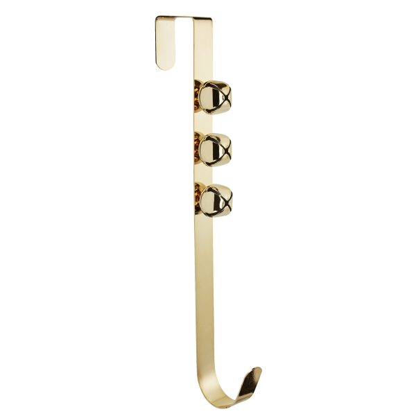 Make hanging your wreaths on door frames easy this holiday season with the CANVAS Jingle Bells Wreath Hanger. This gold shiny wreath hanger is topped with metal bells that jingle whenever the door is opened or closed. With an L-shape design that fits over most conventional doorframes, this durable metal wreath hanger is easy to set up and take down and doesn’t affect the opening and closing of the door.