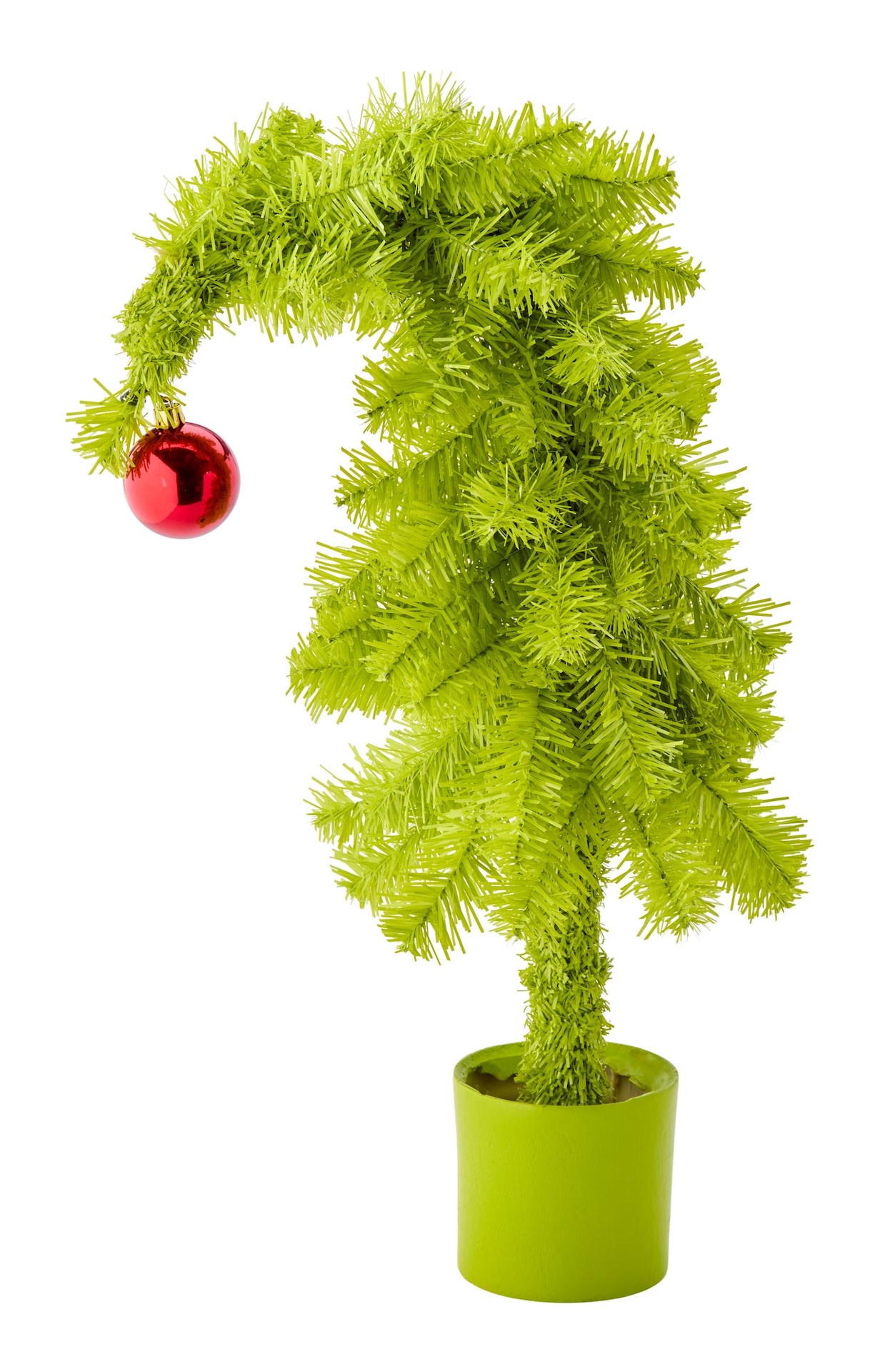 Bring a touch of nostalgia to your holiday décor with the FOR LIVING Crumpit Unlit Tabletop Christmas Tree. This charming 18-inch tree features a whimsical curved design and a single red ornament, making it a delightful addition to any festive setting. Perfect for adding holiday cheer to small spaces.