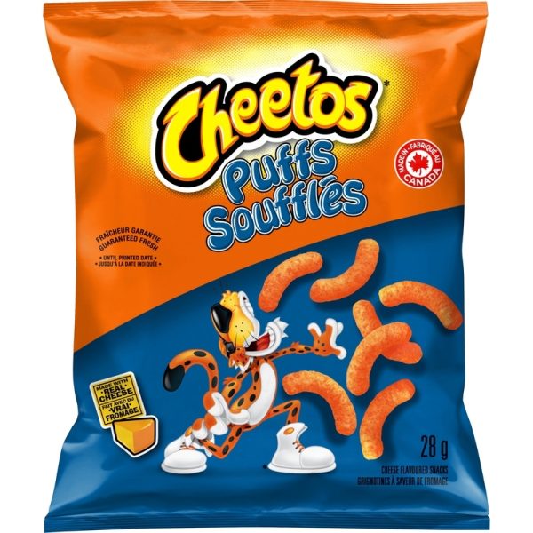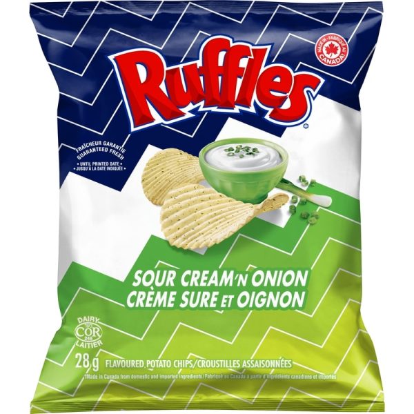 - Snack Size Bags — Lay’s Classic potato chips, Lay’s Bar-B-Q flavoured potato chips, Doritos Nacho Cheese flavoured tortilla chips, Ruffles Sour Cream ‘n Onion flavoured potato chips, Cheetos Puffs cheese flavoured snacks, Ruffles All Dressed flavoured potato chips.