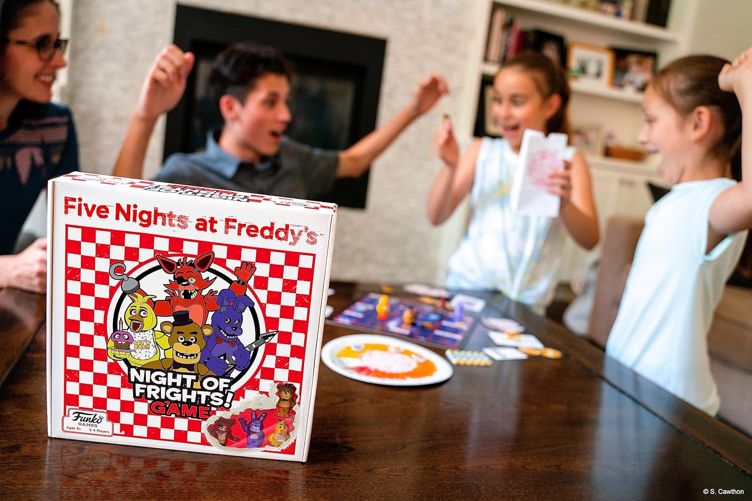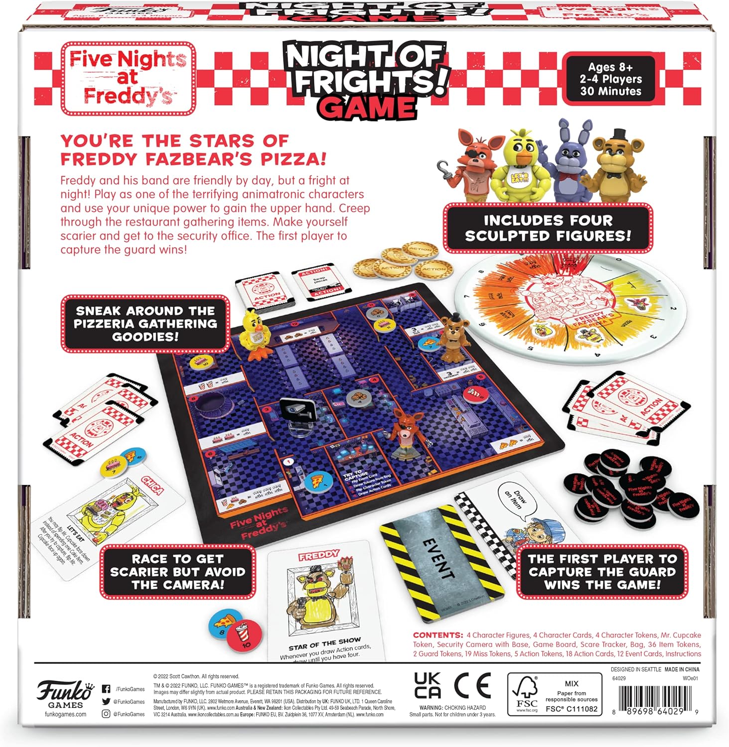 Funko Five Nights at Freddy’s-Night of Frights Game includes four detailed painted figures of Bonnie, Chica, Foxy and Freddy Fazbear. Fun, fast-paced, competitive game where players take on the roles of the iconic animatronics stalking the pizzeria at night. Compete to collect pizza and cakes, use your unique abilities and scare the other animatronics. Push-your-luck thriller game keeps everyone guessing until one player captures the guard. Perfect gift for kids and toddlers on their special day.