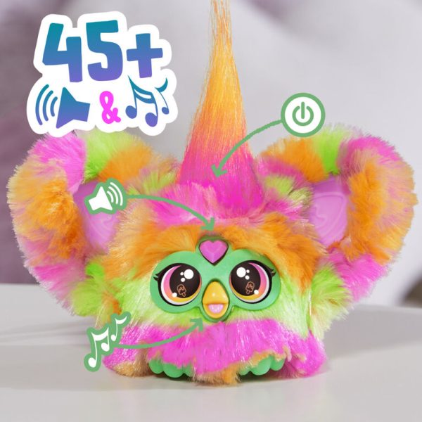 Good vibes all around with Par-Tay the funky Furblets friend! Hear over 45 disco tunes and sounds with this mini Furby electronic toy for girls and boys 6 years and up. Par-Tay has green, pink, and orange fur to look like a tiny pinata. Also plays fun music and sounds in Furbish (but doesn’t speak human languages). Clip them to a backpack or other travel bag with the keychain clip to bring the Furblets toy anywhere you go. Furby and all related properties are trademarks of Hasbro.