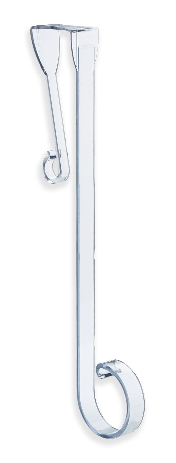 An adjustable wreath hanger that makes hanging up seasonal wreaths as simple as can be. Crafted from clear, shatterproof plastic, this wreath hook features an adjustable design that accommodates wreaths of varying sizes. Perfect for any front door that needs a little holiday cheer, this door wreath hanger is sturdy yet lightweight and blends seamlessly into the background so all eyes are on your festive wreath.