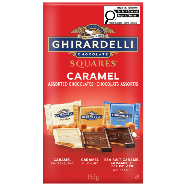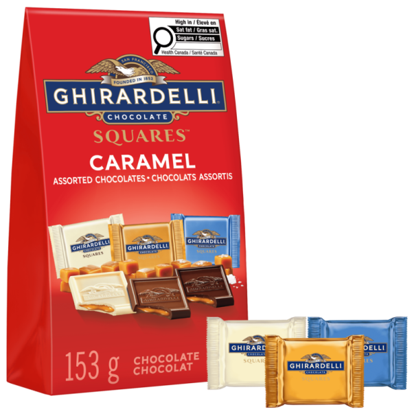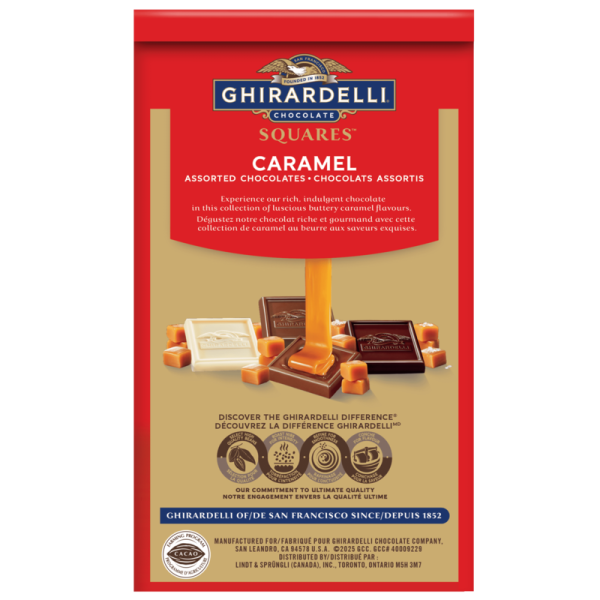 Savour the sweet, creamy flavour of GHIRARDELLI Assorted Caramel Chocolate Squares. This Limited-edition box contains three classic flavour combinations, White Chocolate & Caramel, Milk Chocolate & Caramel, and Dark Chocolate & Sea Salt Caramel. With smooth chocolate exterior and a flowing, buttery caramel centre, these chocolate squares are made from only the finest ingredients and are individually wrapped, perfect for sharing, enjoying on the go.