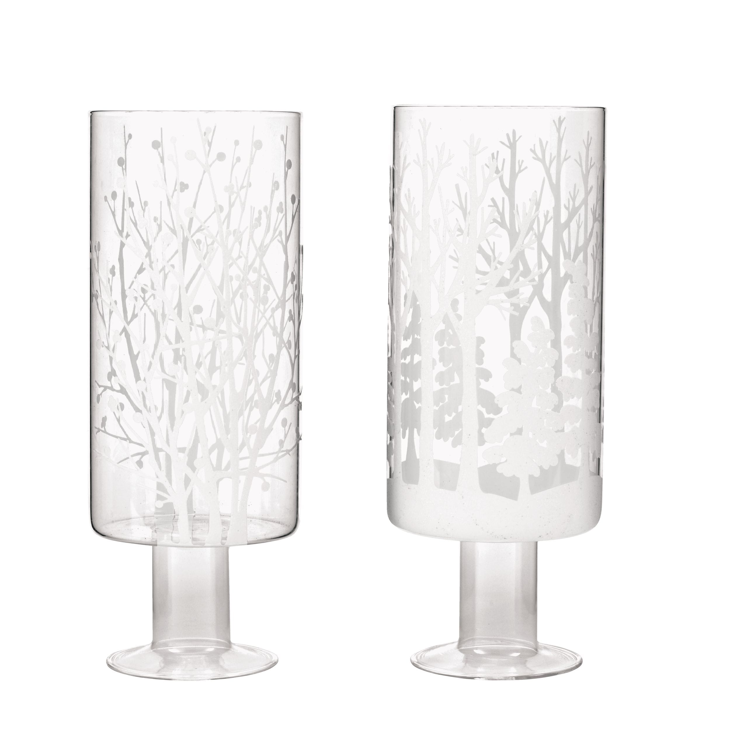 Add the For Living Glass Hurricane Candle Holder to your holiday tablescape to add a hint of wintery charm. This glass candle holder makes a wonderful addition to any centrepiece or mantel décor with its clear colour and subtle forest pattern. This decorative candle holder can be used with any candle of a similar size for a traditional look – or, fill it with glass beads or small Christmas ornaments for a more modern aesthetic.