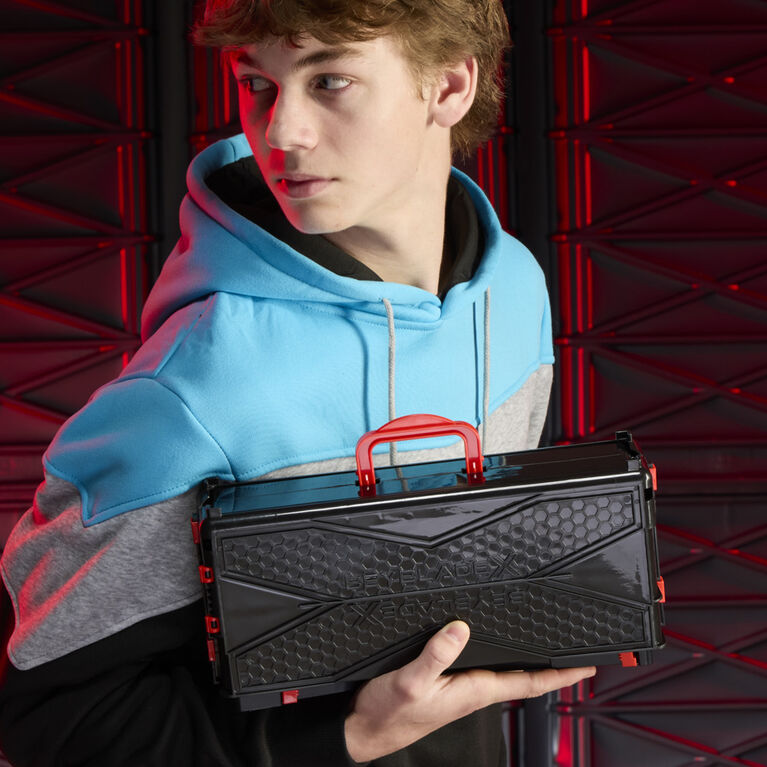 Experience Beyblade X, the next generation of Beyblade stadiums, launchers, and tops! Bladers launch their tops into fierce clashes against their opponent’s to score points – first to score 4 points wins. Bring the battle wherever go with the Beyblade X Clash and Carry Beystadium! This portable stadium opens into a battle arena and folds closed for easy carrying and storage. It features the X-Celerator Gear System to level-up your game. When the gear of a Beyblade X top engages the rail of the stadium, it can super-accelerate into an Xtreme Dash around the stadium for crushing collisions. Pair the Beystadium with launchers and the interchangeable blades, ratchets, and bits of Beyblade X tops to create your own unsurpassable Bey. (Launchers and tops sold separately, subject to availability.) Parents, scan the code on Beyblade X tops to battle in the Beyblade X app! Beyblade toys with authentic Takara Tomy die-cast metal tops make great kids gifts for boys and girls ages 8 and up. Hasbro and all related terms are trademarks of Hasbro.