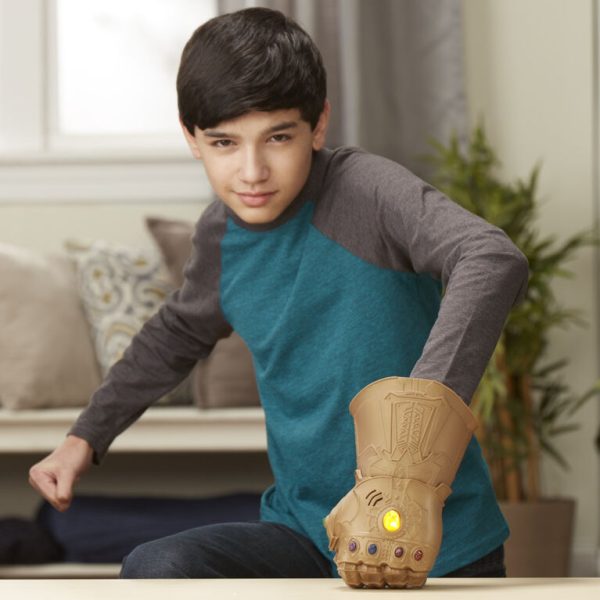 Imagine wielding the immense power of the Infinity Stones with the Marvel Avengers Infinity Gauntlet Electronic fist! Kids ages 5 and up can pretend to be Thanos and decide to conquer – or save – the universe when they wear this role play toy. Activate gauntlet’s light and sound effects by pushing the center yellow stone button. This Avengers toy can accessorize any Thanos costume for a full super villain effect! Thanos toy features an iconic Infinity Gauntlet design complete with the 6 inset stones. Look for Marvel Avengers action figures and roleplay toys and assemble your very own super hero team in your own Marvel Universe! (Each sold separately. Subject to availability.) Copyright MARVEL. All trademarks and registered trademarks are the property of their respective owners. HASBRO and all related trademarks and logos are trademarks of Hasbro, Inc.
