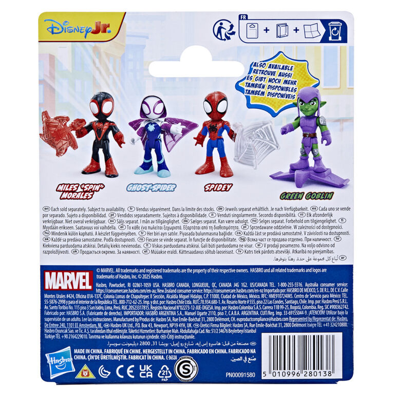Join Team Spidey on the latest wall-crawling adventures with this collectible Marvel Miles “Spin” Morales figure! This 3-inch (7.6 cm) Marvel Spider-Man toy features entertainment-inspired design and deco, as well as a web accessory that attaches to the figure’s hand. Encourage big, imaginative, adventure play for kids ages 3 & up with this Marvel action figure! Look for even more Spidey and his Amazing Friends figures, including Spidey, Miles “Spin” Morales, Ghost-Spider, and Green Goblin, to build a Super Hero web slinger collection or give as cool Marvel gifts for preschool kids! (Each sold separately. Subject to availability.) Copyright MARVEL. All trademarks and registered trademarks are the property of their respective owners. HASBRO and all related trademarks and logos are trademarks of Hasbro, Inc.