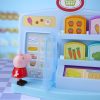 COLORFUL GROCERY BACKDROP features 4 food accessories that all fit inside the trolley, plus a built-in cooler whose door opens and closes. Includes Peppa and Mummy Pig figures, too