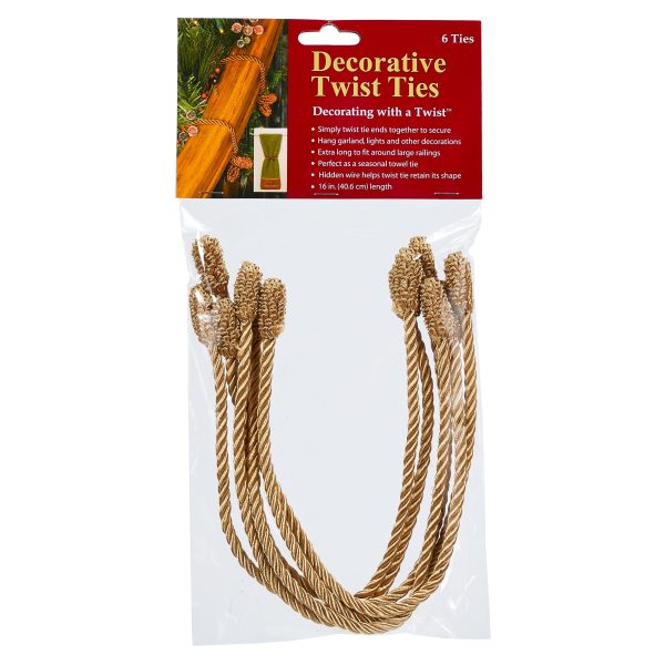 The Haute Décor gold Christmas decoration garland twist ties offer an easy way to secure holiday decor. This package includes 6 decorative 16-inch gold ties that twist around decor pieces to hold them in place discreetly. Their gold color blends in seamlessly while keeping garlands, lights, and other accents where you want them. These versatile ties work on a variety of materials to organize and accent your Christmas decorations.