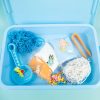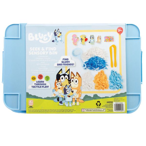 Ignite your little one’s imagination with the Bluey Seek & Find Sensory Bin – a tactile adventure in a box! This all-in-one 12-piece set features moldable sands, tongs, a sifter, crunchy crinkle paper, colorful pony beads and 4 adorable rubber charms of Bluey, Bingo, Coco, and Lucky. Fuel their curiosity and creativity with hands-on play while exploring hide and seek, matching, and communication skills, all guided by our play inspiration booklet. This sensory bin fosters essential skills like fine motor development, sensory exploration, and problem-solving, all while little pups embark on playful adventures with the Heelers. For adults, it’s a reusable play space that keeps messes at bay and encourages hours of independent play. Plus, with their favorite Bluey characters by their side, screen-free fun takes on a whole new meaning. Unbox joy today and watch your child’s world come alive with the Bluey Seek & Find Sensory Bin – perfect for any Bluey fan ages 3 and up.
