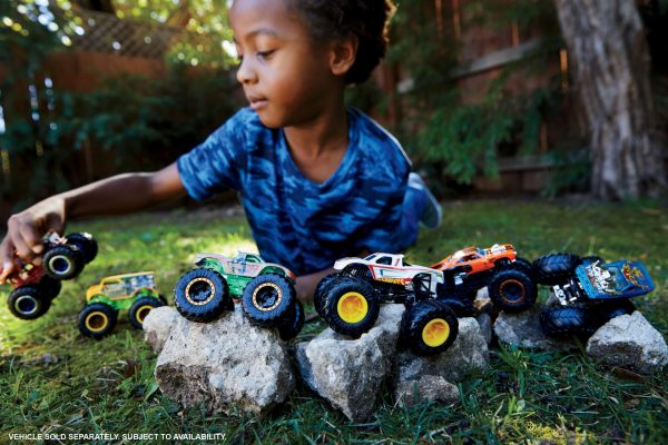 The Hot Wheels® Monster Trucks 1:64 Scale Demolition Doubles™ trucks stand by to smash their arch-rivals! These two-packs of Monster Trucks squaring-off for epic crash attacks are purposely paired for head-to-head battles with their GIANT wheels and big personalities! Every package includes two opponents and the package provides stats for each including name, truck type, strength, unique crash attack and motor-vation for great storytelling fun! Each sold separately, subject to availability. Colors and decorations may vary.