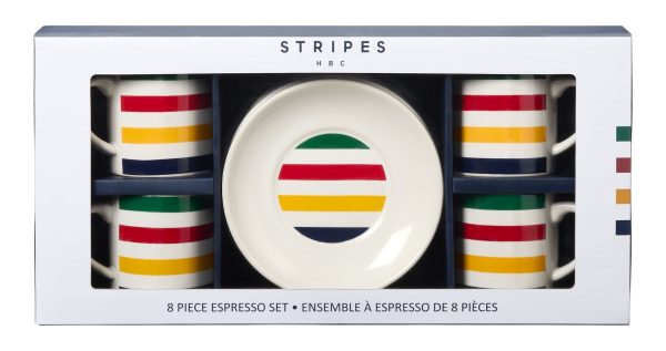 Hudson’s Bay Stripes Espresso Mug Set with Saucers, 8-pc