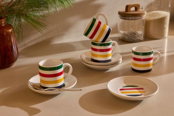 Savour Canadian heritage in every cup with this Hudson’s Bay Stripes™ Espresso Mug Set with Saucers. This 8-piece set, adorned with the iconic Hudson’s Bay Stripes, brings a touch of chic to your table. Ideal for entertaining or as a meaningful Christmas gift for your loved ones, it combines functionality with heritage style.