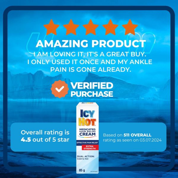 • Included – One 85g tube of Icy Hot Extra Strength Pain Relief Cream for back pain relief, neck, shoulder and arthritis pain relief
