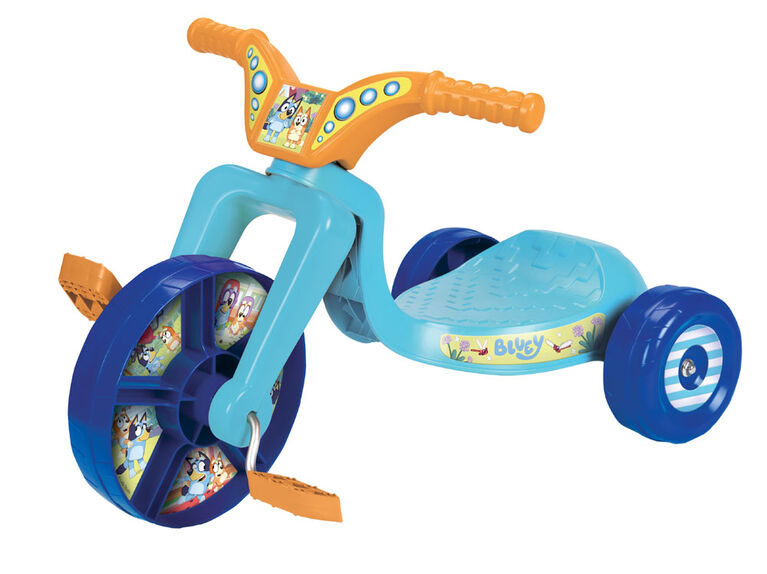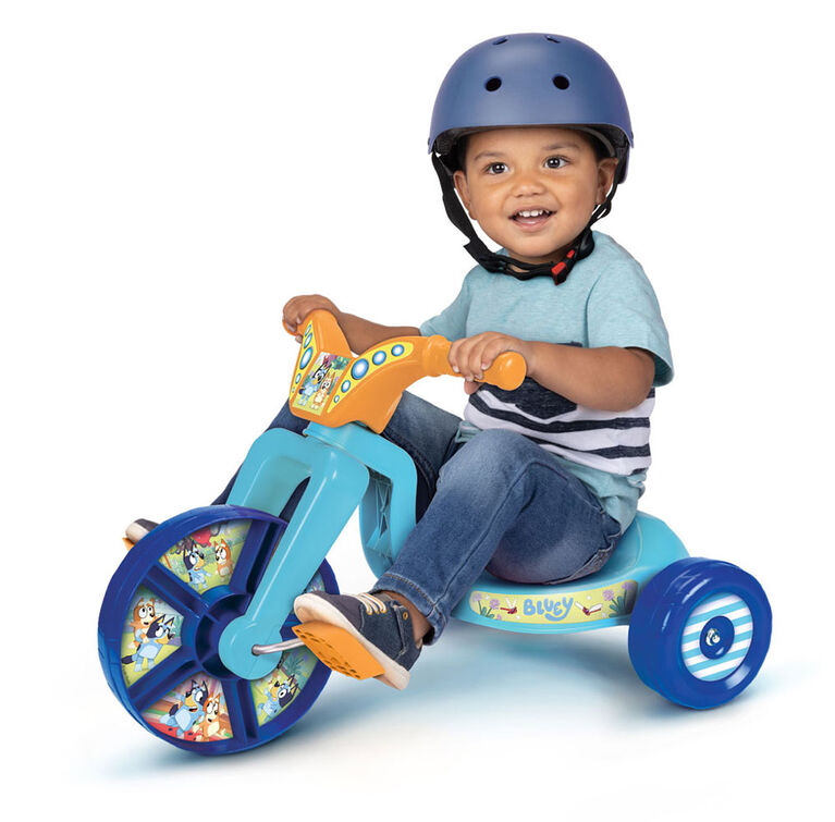 Unique, only available at our store. It’s time to cruise around with your favorite Bluey characters on the Fly Wheels Junior Cruiser. Featuring mega grip tread on wheels to for awesome street gripping action and a low center of gravity, this Junior Cruiser is perfect for little ones learning to pedal and ride. Design includes bright character graphics and custom front plate featuring Bluey & Bingo that your child will love! Handlebars are easy to grip and make riding secure & safe. Always have your toddler wear a helmet (Helmet not included). Adult assembly and supervision required. Happy Riding!