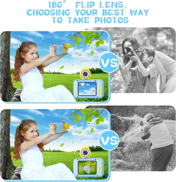 - 2.4 Inch IPS Screen and 180° Flip Lens: Your child can easily use the self-portrait mode by simply turning the lens. The 180° flip lens is more flexible and exciting, enabling more angles of shooting. The mini body has a 2.4-inch IPS HD screen (others only have a 2-inch screen) to give your child 1080p high-definition pixels. The larger button is more comfortable for children's hands.