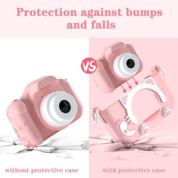 - [Protective Silicone Case Included]This kid's Camera is Environmentally friendly materials with safety standards, it’s non-toxic, shock-resistant, and enduring materials. We all know little ones are still learning to be careful with things. The anti-drop silicone casing provides the toddler camera with shockproof protection against bumps and falls. The camera for kids has a enduring lanyard for portability which is specially designed for children to hang the mini camera on their neck.