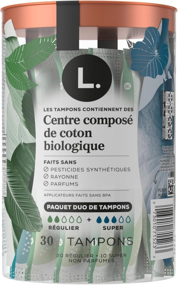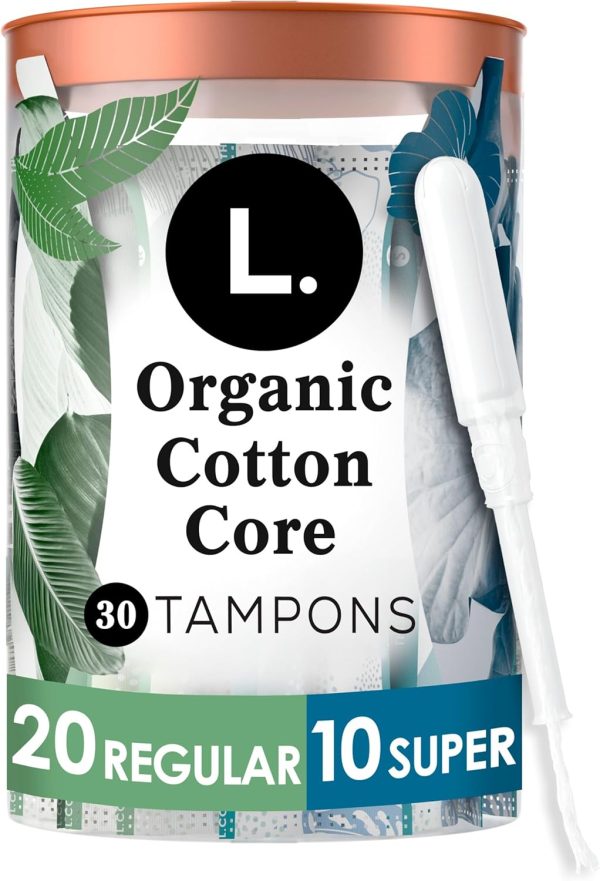L. Cotton Tampons Regular/Super Absorbency Multipack, Contains an Organic Cotton Core, Made Without Synthetic Pesticides, or Fragrances, Applicator Made Without BPA, 30 Count