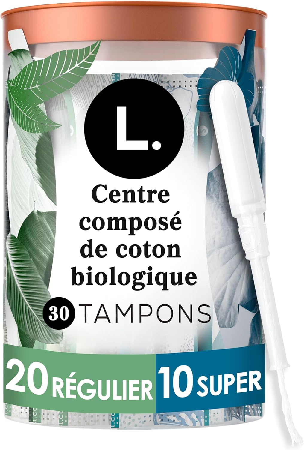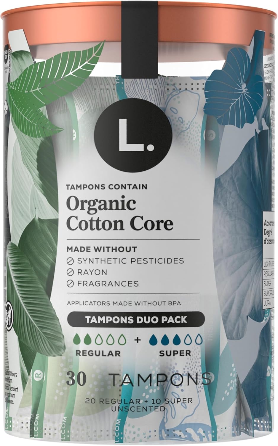 L. Cotton Tampons Regular/Super Absorbency Multipack, Contains an Organic Cotton Core, Made Without Synthetic Pesticides, or Fragrances, Applicator Made Without BPA, 30 Count
