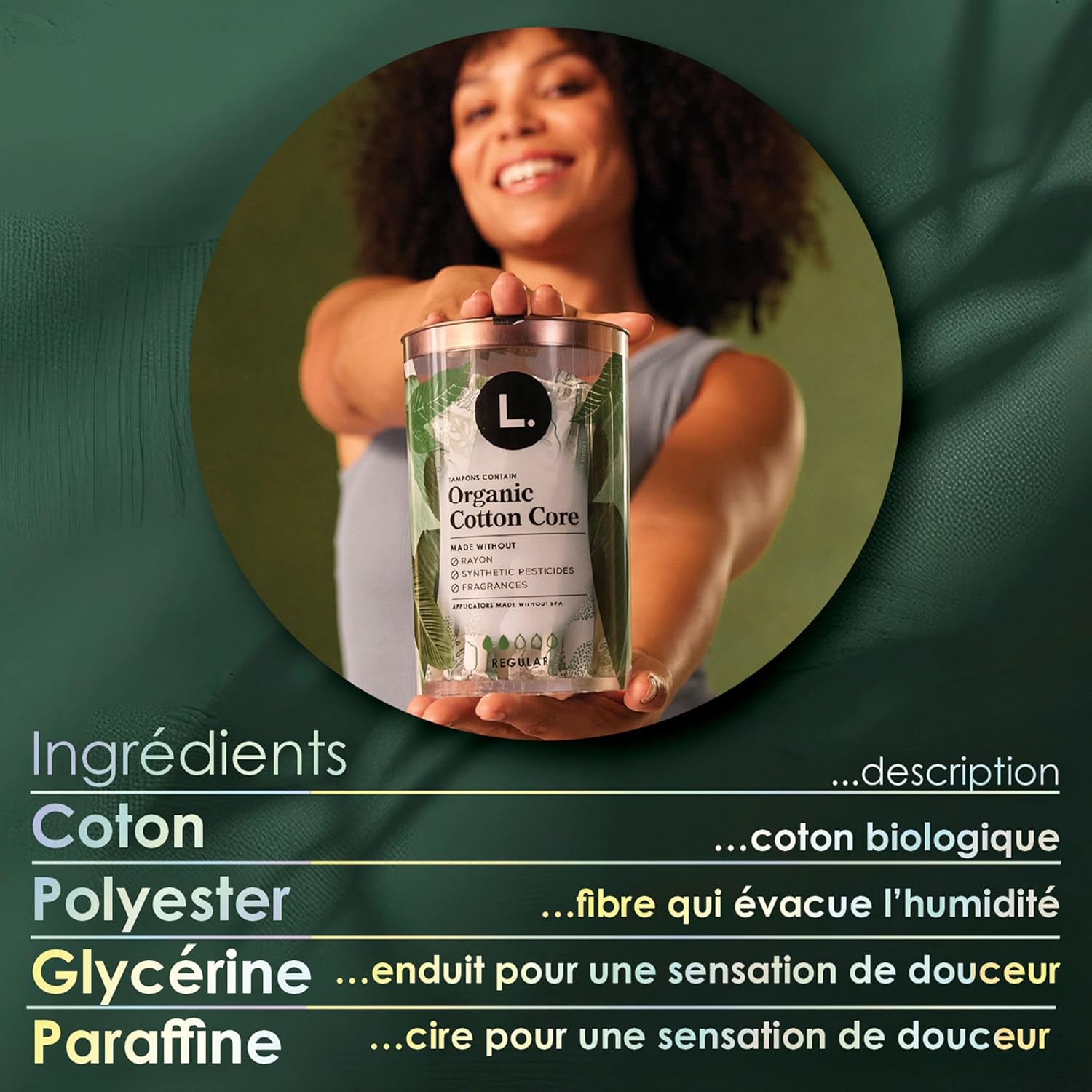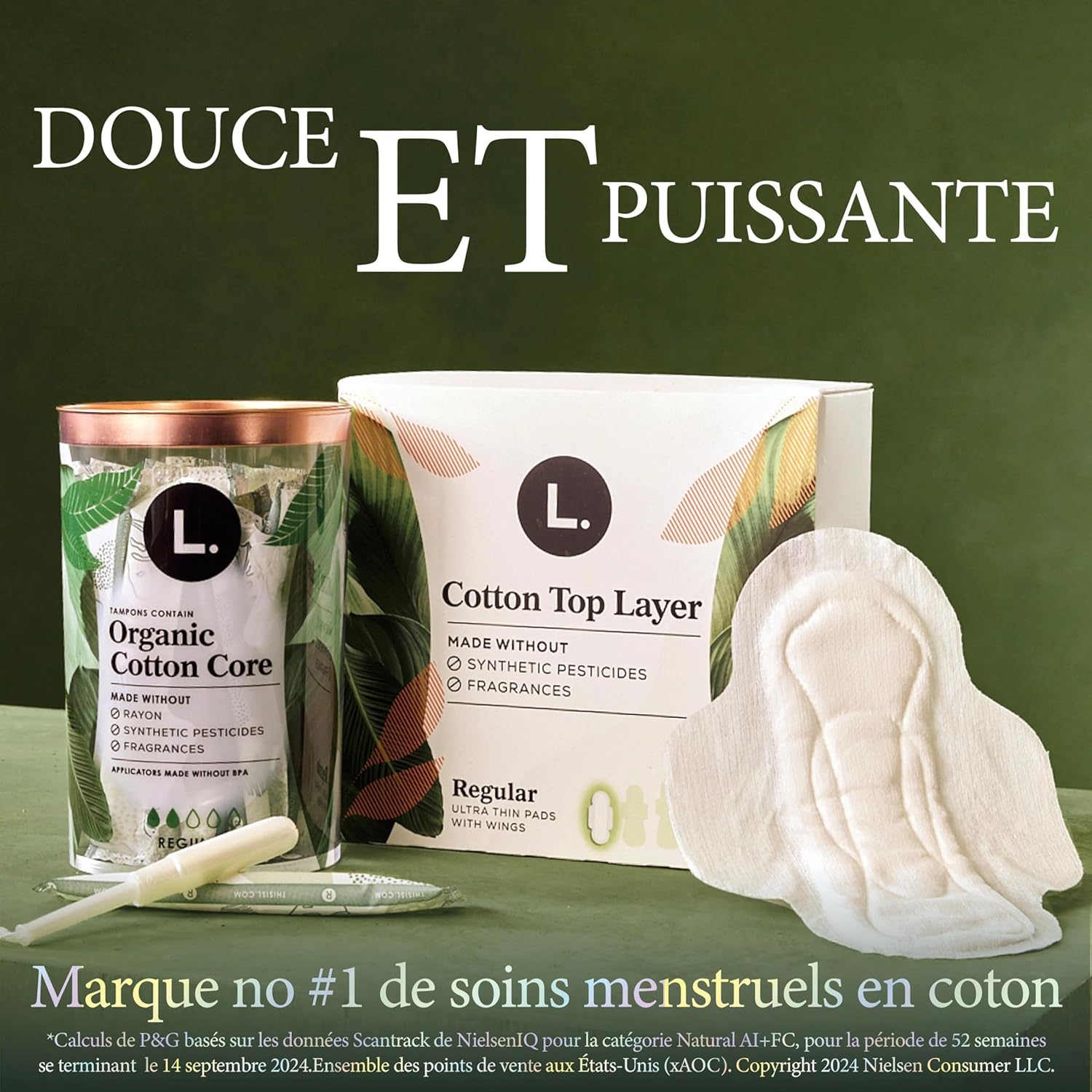 At L, we believe that period care should be both gentle on skin and powerful. Our mission is to provide exceptional protection you can trust. Our pads, tampons, and liners are made without synthetic pesticides and fragrances and crafted with a powerful leak-stopping design. We prioritize using only high-quality ingredients, including an organic cotton core in our tampons and an organic cotton top layer on our pads and liners. Experience the perfect balance of gentle and powerful protection with L., because you deserve nothing less. L. is for Loving Your Self: Our tampons contain a US grown organic cotton core, are made without synthetic pesticides and fragrances, and have applicators made without BPA. Also, our pads and liners are made with a US grown cotton top layer and are made without synthetic pesticides and fragrances. L. is for Lending A Hand: We see access to period care as fundamental for every body and an opportunity for change. We are on a mission to make exceptional period care accessible for all. Thats why we provide funding every year to non-profit, community-based organizations around the world that increase access to period care and menstrual health education. SAFETY STARTS WITH SCIENCE: Protection begins with safety. That’s why at L. we have engineers, chemists, biologists, and safety scientists who evaluate every ingredient throughout the discovery, design, and development of our products. Ingredient safety is our top priority, so we are continuously studying new scientific research, reviewing consumer feedback, and connecting with experts, to ensure every product performs at its highest and safest level. QUALITY IS OUR OBSESSION: For us, creating a product you trust is more than just combining great ingredients – it’s working with other companies that care about quality and safety as much as we do. We work hard to find the right partners and suppliers worldwide with ingredients that meet our standards. We draw from our resources to follow industry-leading testing methods on our ingredients and screen for background substances. We rely on proof and data when selecting our ingredients, but also for setting standards on how our products are made.