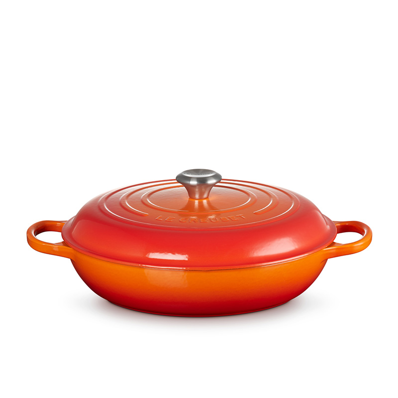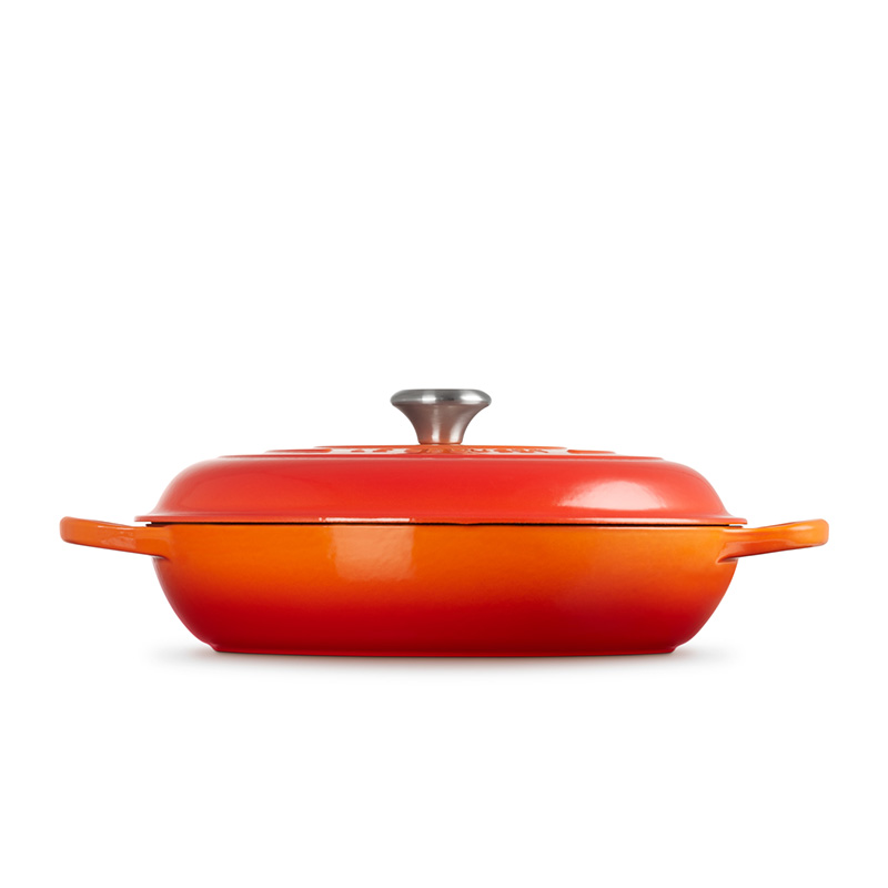 The Braiser is built to last, thanks to a chip-resistant enamel interior and exterior. Its wide base provides a consistent heat source, offering superior heat retention to ensure even slow cooking.