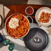 our store’s Dutch Ovens are built with enamelled cast iron, featuring a chip-resistant enamel exterior. Their wide loop handles provide home cooks with a steady grip when transferring the pot from stovetop to tabletop.