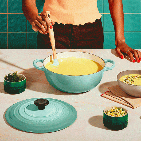 The Chef’s Dutch Oven is ideal for stovetop simmering, allowing ingredients to be exposed to a consistent heat source as they slow cook. Its sloped sides simplify stirring and promote continuous movement, even after the lid is in place.
