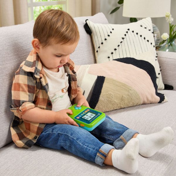 Hey buddy, it’s game time! Grab this handheld video game toy, packed with mini-games and music that introduce kids to numbers, letters, shapes and more. Start with the basics and pop bubbles to dive into letter sounds or go on a treasure hunt to collect and count coins. Level up learning and play with animated animals. Help Penguin slide and jump to collect letters, chomp on numbers with a hungry bug and catch shapes with a little ape. Add a personalized touch to the letters of the alphabet by adding a child’s name and they’ll see it in the games. Intended for ages 2+ years. Requires 3 AAA batteries. Batteries included for demo purposes only. New batteries recommended for regular use.