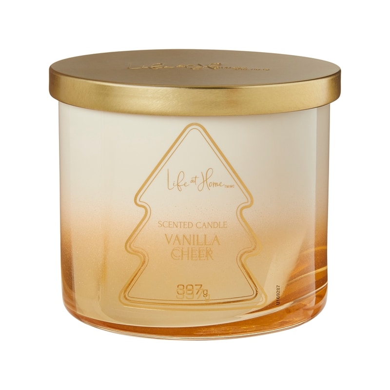 Our Vanilla Cheer Scented Candle brings the festive spirit to your home. This candle is a great addition to your bedroom, living room, kitchen, or office. Create a relaxing atmosphere with the scent of the season using our 3-wick candles.