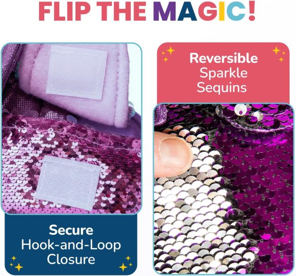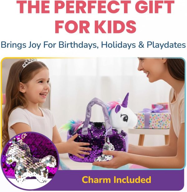 - Flippable Sequin Bag: Girls will love the mini pet bag with reversible sequins & charm. The handbag features colorful sparkles that flip from pink to silver. An awesome stuffed unicorn for girls 3 & up.
