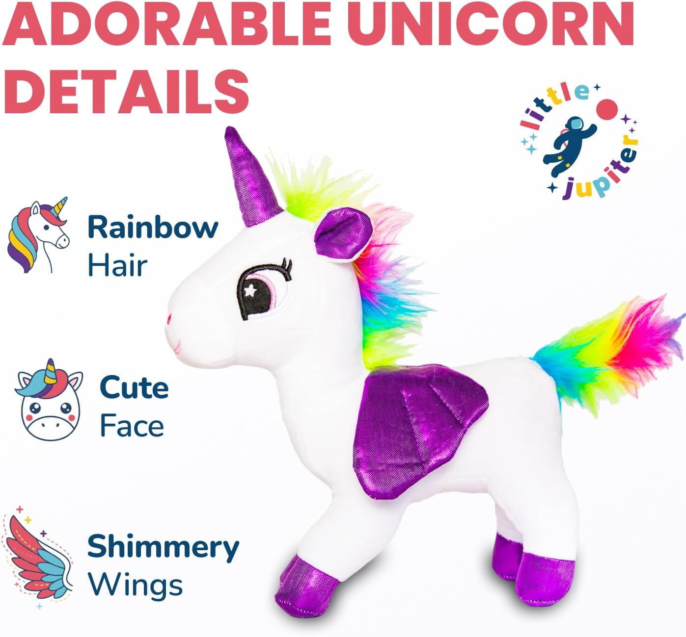 - Larger Than The Competition: Our unicorn plushie sets are 12 inches long! The perfect size. You will love our premium stuffed animal unicorns. Perfect for play & sleep.