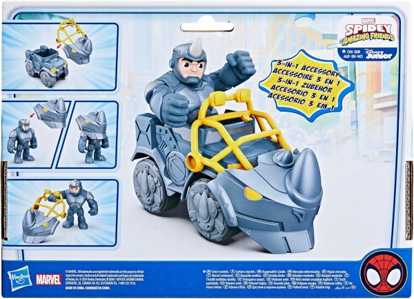 - RHINO FIGURE AND VEHICLE SET: Race as big baddie Rhino with this Spidey and His Amazing Friends Rhino Wrecker toy set! Playset includes Rhino action figure, vehicle, and 3-in-1 accessory