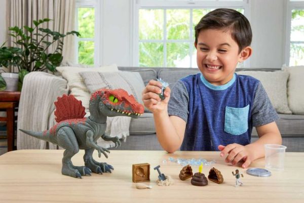 The Spinosaurus Cage Crasher is much more than a dinosaur figure — it’s an immersive unboxing exploration with sensory dino play and storytelling! Dinosaur lovers can relive the thrills and adventures of the Jurassic World franchise while they unveil multiple levels of reveals and surprises within the pack. In addition to the spectacular 12,9-inch long Spinosaurus, there’s a Cryo Sludge encapsulated mini dinosaur, Fossil Sand, Dough Droppings and much more! Makes a great gift for fans of Jurassic World and dinosaur play 4 years and older. Colors and decorations may vary.