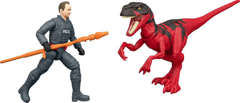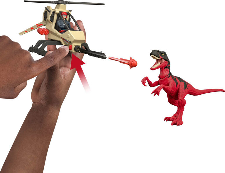 Capture the excitement of Jurassic World with the Legacy Collection Reimagined Chopper Chase Pack! This new line is about reimagining iconic movie moments in a new and playful way. Designed at 3.75inch scale, this set includes a helicopter vehicle with spinnable rotor and projectile (some assembly required), a distinctivelooking Atrociraptor and an ACU pilot action figure with removable helmet and spear, for many ways to play. Scan the hidden Tracking Code on the dinosaur in the free Jurassic World Play App with a compatible smart device (Android or iOS, not included) to unlock a digital version of the dinosaur and access to fiercely fun games! Makes a great gift for dinosaur fans 4 years and older. Colors and decorations may vary.