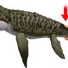 This Bite ‘N Blast Mosasaurus dinosaur action figure with its distinctive aquatic design brings the excitement of Jurassic World Rebirth home. A button-activated ‘Bite’ feature allows dramatic re-enactment of movie scenes and inspires creative play. Kids can control the attack by holding the tail and pressing the button to make the jaw open wide to bite the mini Dilophosaurus figure that’s included can be completely ‘swallowed’ into the large Mosasaurus body! Press the button again to ‘Blast’ the prey back out! With movable joints and movie-accurate design on the 25.7-inch long Mosasaurus, it’s ready for both play and display. Scan the Tracking Code under the fin in the free Jurassic World Play App with a compatible smart device (Android or iOS, not included) to unlock a digital version of the dinosaur and play the fiercely fun game to race various vehicles on land, air and sea. Makes a great gift for dinosaur fans ages 4 years and up. Colors and decorations may vary.