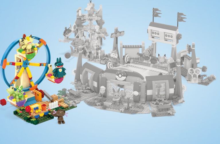 Take your Pokémon team for a spin with the Ferris Wheel Fun building set. Place Sprigatito, Meowth, Paldean Wooper, and Munchlax in the wheel then turn the crank to activate the set’s motion. Combine with other Adventure Builder sets to create an expanded Pokémon world with motion; each sold separately.