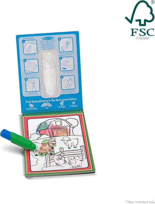 Make early learning magical and mess-free with the Melissa & Doug On the Go Water Wow! Alphabet Activity Pad! This reusable paint-with-water book features 4 spiral-bound pages and a refillable, no-leak water pen that reveals letters and vibrant images with every stroke—then dries to “erase” for endless repeat play. This animal-themed book includes four scenes to color, and a search-and-find activity for each scene, building early literacy, fine motor skills, and hand-eye coordination in a fun, screen-free way at home or on the go. Perfectly sized for little hands, the chunky water pen stores in the cover, making this a parent-approved travel toy for car rides, airplanes, waiting rooms, and quiet time at home. Whether you’re celebrating a birthday, holiday, back-to-school season, preschool milestone, or gearing up for travel, this screen-free, hands-on activity makes a thoughtful gift for kids ages 3 to 7. Compact enough to fit in backpacks and carry-ons, it’s a fun and educational way to keep little ones engaged on the go. Pair it with a Melissa & Doug Reusable Sticker Pad for even more creative learning wherever you are. This product is certified by the Forest Stewardship Council. FSC certification ensures that products come from responsibly managed forests that provide environmental, social, and economic benefits, and that forests are protected for future generations. Please note that FSC certification applies to new inventory only (FSC C156584)