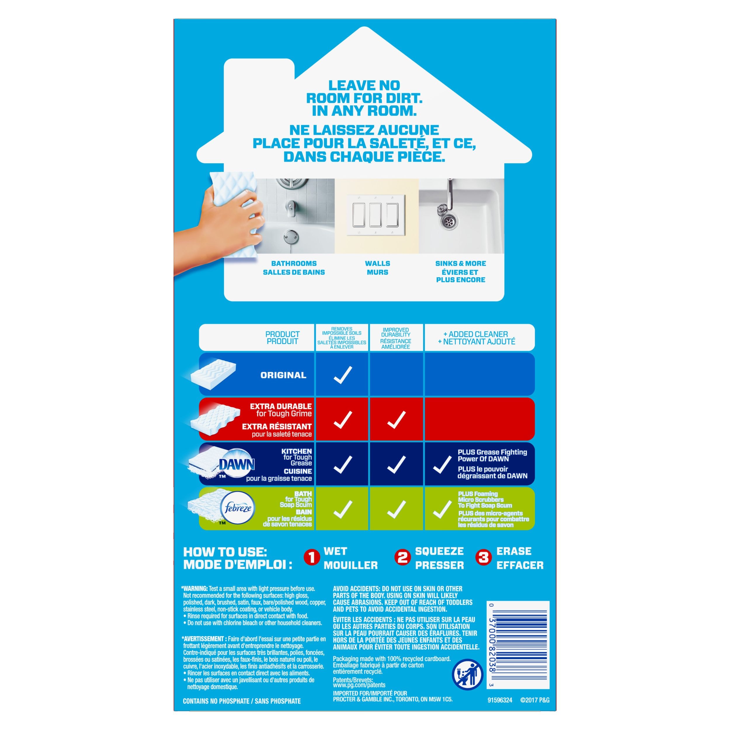 Mr. Clean Magic Eraser Extra Durable all purpose cleaner requires 80% less scrubbing and is perfect for tough messes. This eraser sponge has cleaning micro-scrubbers that reach into surface grooves, lifting away built up dirt and grime. Use it all around the house as a textured multi surface cleaner on your impossible messes: marks on walls, soap scum in your bath tub and on your shower glass, and greasy kitchen messes on counters, stovetops, and ovens.