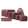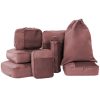 Crafted from premium recycled nylon and featuring breathable mesh tops, this set of 8 packing cubes and bags is designed to revolutionize the way you pack. The assorted sizes and shapes ensure every inch of your luggage is optimized for space. Small: socks and underwear, toiletries and tech essentials. Medium: shoes and sportwear. Large: larger pieces of clothing.
