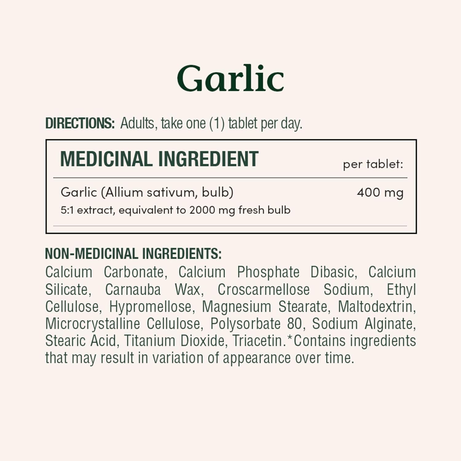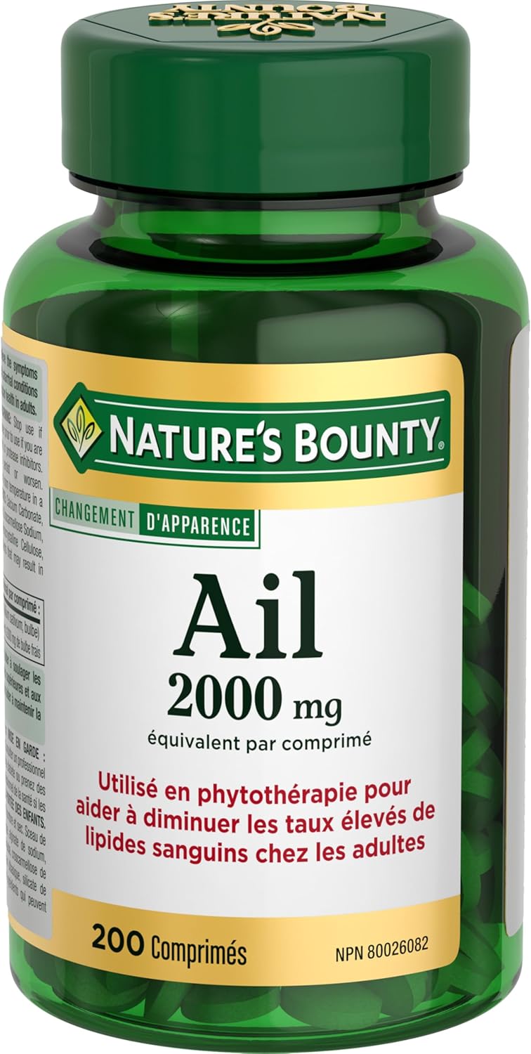 For over 40 years, NATURE’S BOUNTY has been making vitamins and nutritional supplements with you in mind. You take vitamins because you want to help your body to be at its best – so why settle for just any vitamin brand? Try NATURE’S BOUNTY today. NATURE’S BOUNTY Garlic is used in herbal medicine to help reduce elevated blood lipid levels in adults. Garlic is also used in herbal medicine to help relieve the symptoms associated with upper respiratory tract infections and catarrhal conditions and to help maintain cardiovascular health in adults. Each tablet contains 2000 mg garlic as well as calcium carbonate, calcium phosphate dibasic, calcium silicate, carnauba wax, croscarmellose sodium, ethyl cellulose, hypromellose, magnesium stearate, microcrystalline cellulose, sodium alginate, stearic acid, and triacetin. Adults, take one (1) tablet per day.