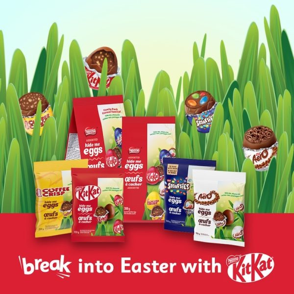 Just in time for Easter comes NESTLÉ SMARTIES Hide Me Eggs! A miniature version of a classic treat, these miniature milk chocolate eggs are filled with miniature pieces of SMARTIES candies, a Canadian favourite for over 80 years. Individually wrapped in foil, they are ready to be hidden for an egg hunt, slipped into an Easter basket, or shared with family and friends.NESTLÉ SMARTIES Hide Me Eggs are made with natural flavours, no artificial colours, and sustainably sourced cocoa that is certified by the Rainforest Alliance, an organization that works to help farmers improve the quality of their products and strengthen their communities. For more than 25 years NESTLÉ CANADA has raised millions for Kids Help Phone, Canada’s only 24/7 e-mental health service, available in English and French.