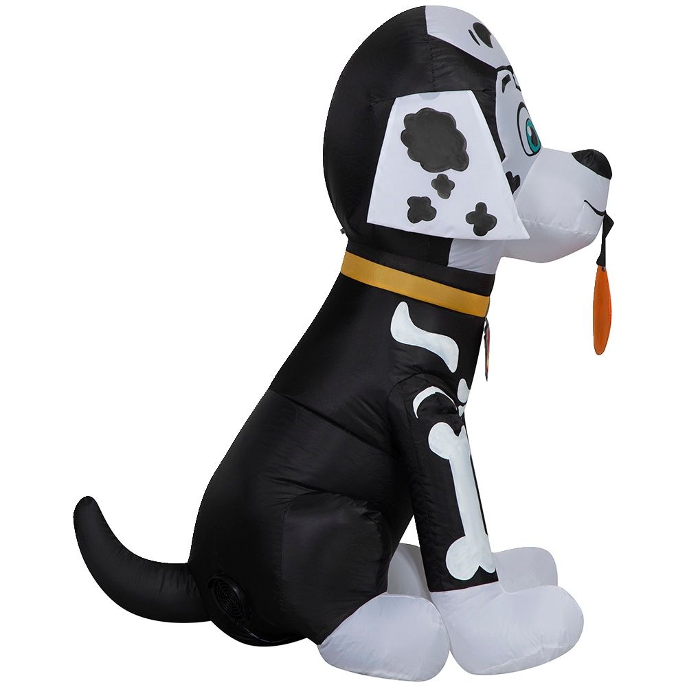 Fans of PAW Patrol will love this Airblown® Inflatable Marshall! Dressed as a skeleton for a night of trick-or-treating, Marshall holds a jack-o’-lantern treat bag in his chompers. Make a spooktacular addition to your outdoor Halloween decorations with our Marshall inflatable. Setup is super simple. Just plug it in, stake it down and watch the magic unfold. Display this PAW Patrol Halloween decoration as a standalone or combine it with other Airblown Inflatables to create a custom scene. Includes everything needed for easy outdoor setup.