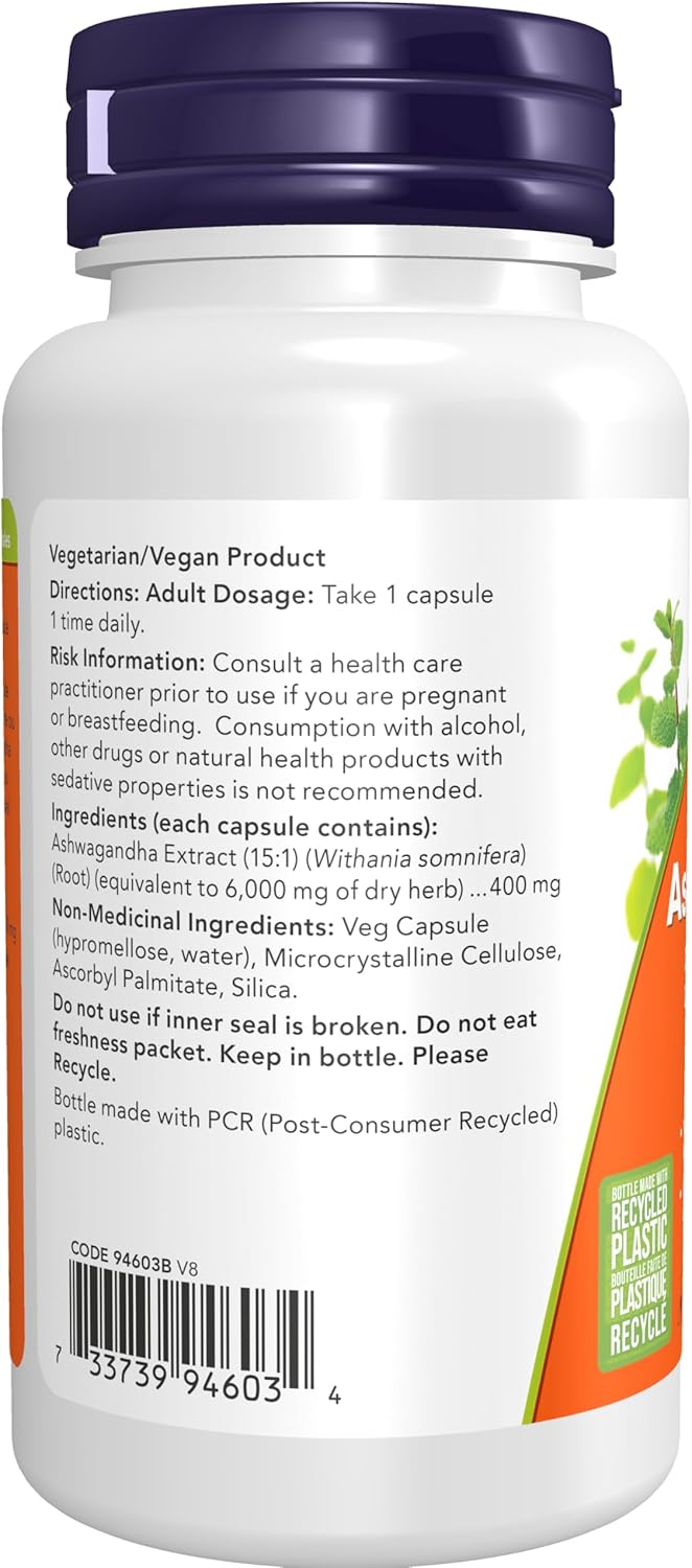 NOW Supplements, Ashwagandha (Withania somnifera) 450 mg (Standardized Extract), 90 Veg Capsules