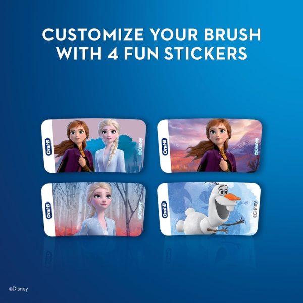- Makes brushing fun with the interchangeable handle stickers featuring Disney’s Frozen