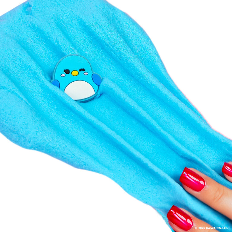 Hit a home run in sensory fun with the Original Squishmallows Bebe the Bluebird Premium Cloud Slime! This resealable jar of fun contains 8 ounces of fluffy, blueberry-scented cloud slime and a rubber charm of your favorite bluebird on the Squad, Bebe! Pre-made slime means you can skip the messy measuring and get right to the sensory fun – just open and play! See how far the scented slime can stretch, feel the cheer with every Squish, and add the charm to turn playtime into a full-on pep rally. Combining slime as soft as your favorite Squishmallows with a smooth, chunky charm creates the sweetest tactile experience both kids and adults will love. Poke it, twist it, squeeze it, swirl it, then return the slime to its container for More to Squish later! Recommended for any Squishmallows fan ages 6 and up.