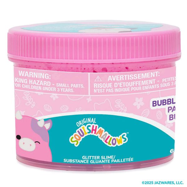 Spring into sensory fun with the Original Squishmallows Patty the Cow Cloud Slime! This resealable jar of fun contains 8 ounces of bubble gum-scented cloud slime and a rubber charm of your favorite ‘Mallow at the farmer’s market, Patty the Cow! You can skip the messy mixing and activators – this slime comes pre-made and ready to play. Squish, squeeze, and pull it every which way, then add the rubber Patty charm for a tactile adventure as playful as her favorite pastime: puddle jumping! Fold it, poke it, twist it, then return the slime to its container for More To Squish later. Perfect for gift baskets, back-to-school, or just for fun, this slime promises to spark smiles. Recommended for any Squishmallows fan ages 6 and up!