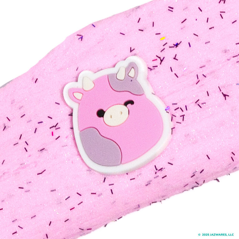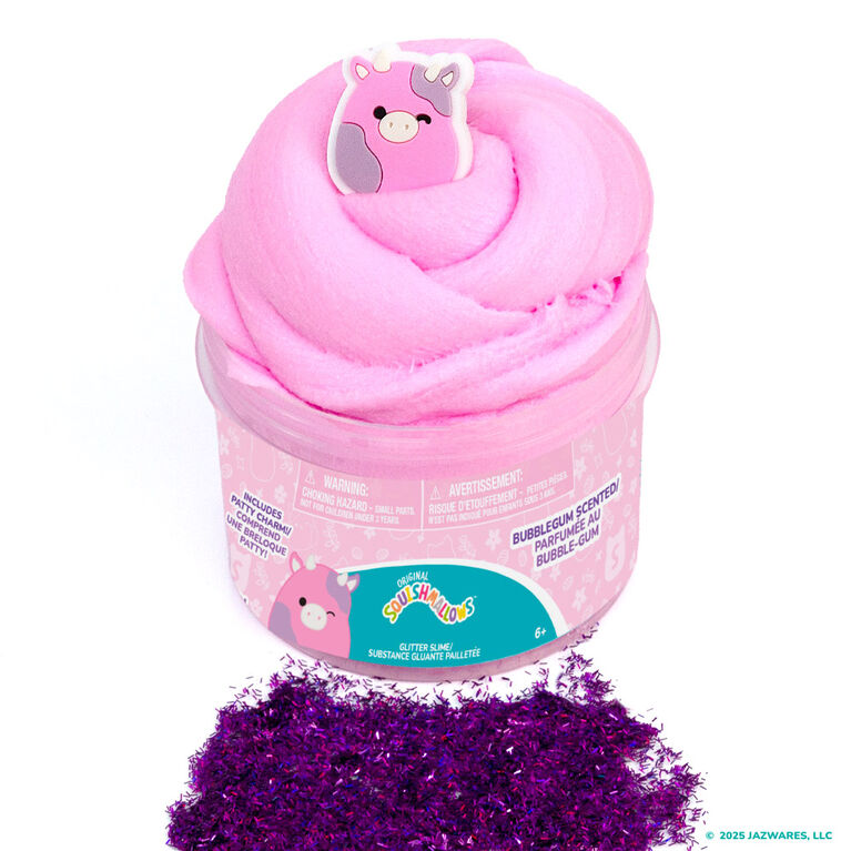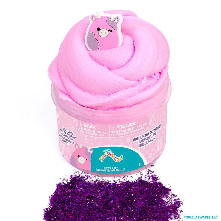 Spring into sensory fun with the Original Squishmallows Patty the Cow Cloud Slime! This resealable jar of fun contains 8 ounces of bubble gum-scented cloud slime and a rubber charm of your favorite ‘Mallow at the farmer’s market, Patty the Cow! You can skip the messy mixing and activators – this slime comes pre-made and ready to play. Squish, squeeze, and pull it every which way, then add the rubber Patty charm for a tactile adventure as playful as her favorite pastime: puddle jumping! Fold it, poke it, twist it, then return the slime to its container for More To Squish later. Perfect for gift baskets, back-to-school, or just for fun, this slime promises to spark smiles. Recommended for any Squishmallows fan ages 6 and up!